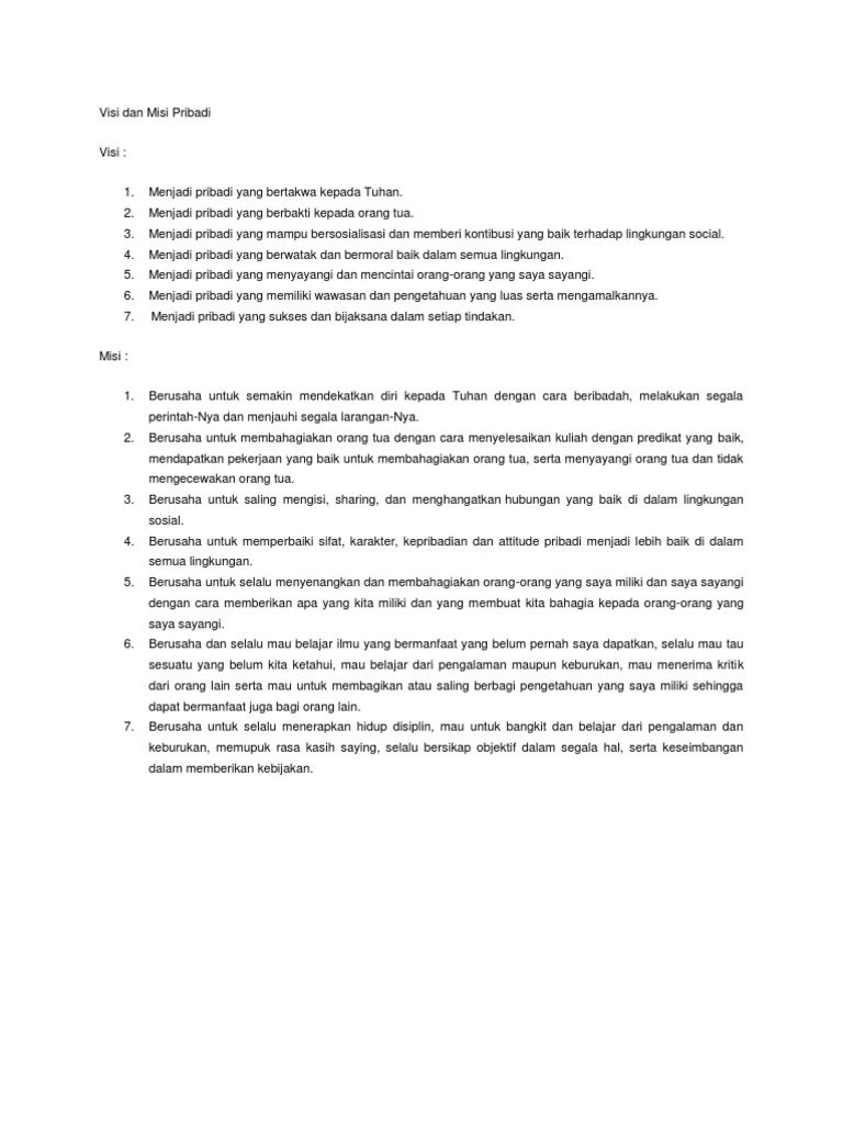 Contoh Visi Dan Misi Seseorang